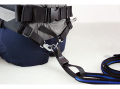 - Lijn bevestiging met een twistlock karabijn, die kan in plaats van de panieklus die standaard bij de heupgordel zit. Totale lengte ongeveer 20 cm en zeer licht 41 gram.