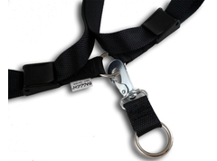- Panieksluiting: deze kunt u eventueel gebruiken ipv de panieksluiting/banden. U kunt dan de 2 musketons bevestigen aan de ring, in de andere ring die open kan doet u de lijn. Door het midden stuk naar achteren te trekken kunt u de ring openen in noodsituaties. Afmeting 12 cm en 127 gram