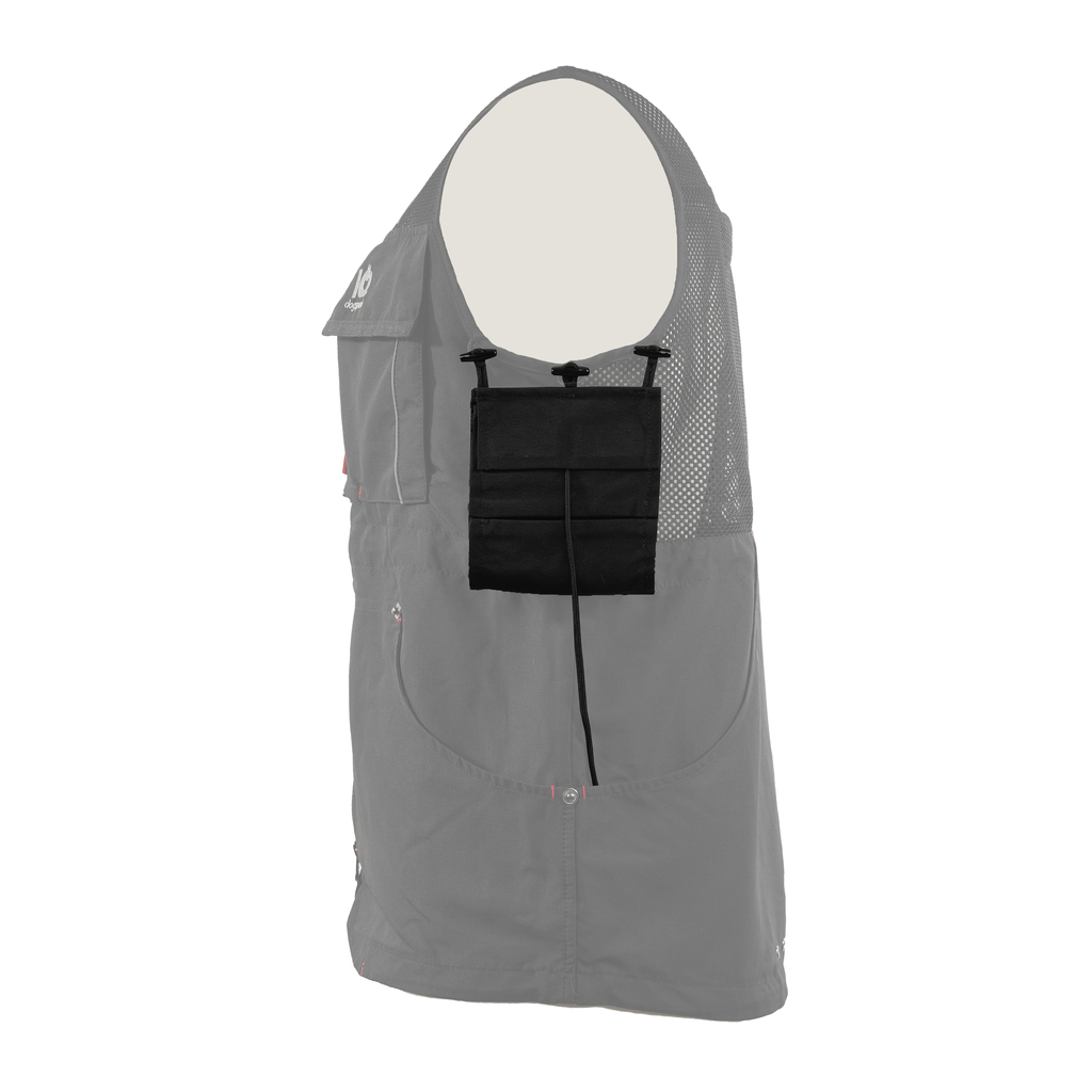 Je knoopt de pouch eenvoudig vast aan de linkerarm van je vest (zie foto's). De IQ Magnetic Pouch maakt het gemakkelijk om een ​​bal of ander klein speeltje op te bergen zonder dat je hond het ziet. Om de pouch te openen en de beloning te activeren, trek je aan het koord aan je rechterkant – en het speeltje valt onder je linkeroksel vandaan.