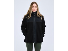 Sportieve fleecejas voor dames, gemaakt van een pluizig materiaal dat schapenwol nabootst, waardoor hij stil en extra warm is. De jas is voorzien van verstevigingen van onze duurzame TC-Lite op de onderarmen en borst voor extra duurzaamheid. De pasvorm is iets oversized(de confectiematen achter de maten is het oversized al meegenomen) en heeft een trekkoord in de zoom voor een verstelbare taille. De fleecejas heeft een hoge kraag, een soepele tweewegritssluiting aan de voorkant en handzakken met rits.
