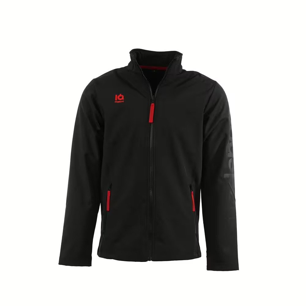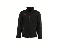 Dit lichtgewicht softshelljack met een knuffelzachte fleecevoering is verkrijgbaar in zwart met rode accenten en een matte laserprint op de rug en linkermouw.