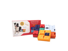 De Genius Set bevat pawzles van niveau 3 en biedt de meest complexe en lonende puzzelervaring in het Pawzler assortiment. Elke Genius Set bevat één basis waarop de pawzles worden geplaatst, met geavanceerde mechanismen zoals meerstaps schuifjes, draaibare sloten en gelaagde compartimenten allemaal ontworpen om de probleemoplossende vaardigheden van de hond tot het uiterste te drijven.