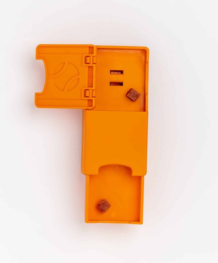 De compartimenten kunnen worden gevuld met traktaties, reguliere hondenbrokken of zelfs pindakaas, zodat de hond actief moet zoeken naar de beloning.
