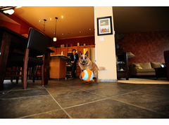 Zachte pluizige bal met een kern van schuimrubber, waardoor deze geen herrie maakt en geen meubels beschadigd.