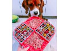 Is je hond al wat ouder, juist nog in de groei of is er een blessure waardoor er niet teveel gewandeld kan worden? In dat geval kun je een likmat wat vaker aanbieden met een kleine traktatie en dient het als hersenwerk voor je hond. Hiermee geef je je hond een mentale uitdaging die ook energie kost en zal hij zich makkelijk ontspannen. Het gaat verveling tegen. Er zijn likmatten verkrijgbaar in verschillende maten en patronen. Je kunt ze hierdoor goed afwisselen om het zo steeds spannend en uitdagend te houden. De lickimat Slomo is eigenlijk meer een slowfeeder of voerpuzzel en heeft 4 verschillende compartimenten voor zowel natte voeding en brokjes.