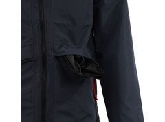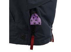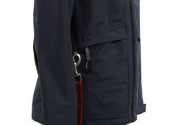 De capuchon biedt ook voldoende ruimte voor dames met lang haar en kan met klittenband in maat worden versteld. Een versteviging aan de bovenkant zorgt voor goed zicht, zelfs als het hard regent. Lijnen kunnen met een afneembare lus aan de schouder worden bevestigd of met diverse lussen en karabijnhaken. De logo's reflecteren in het donker. Waardevolle spullen en ook grote mobiele telefoons kunnen veilig in aparte zakken worden opgeborgen.