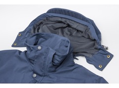 Met afneembare en verstelbare capuchon. Ruime zakken met ritsen, de jas heeft een aansluitende pasvorm.