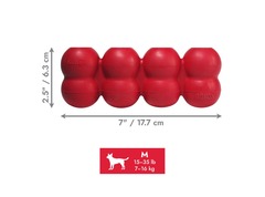 Een schat vol kauwplezier! Vul de vier ruimtes van de KONG Goodie Ribbon met traktaties en de Goodie Gripper™ ribbels binnenin zorgen voor de mentale uitdaging voor honden om de beloning te pakken te krijgen. Het duurzame KONG Classic Rubber bevredigt de natuurlijke kauwinstincten en biedt daarnaast een duurzame oplossing om honden bezig te houden. Ideaal voor vulling met KONG Easy Treat, KONG Snacks of de favoriete droge brokken van de hond.
