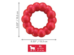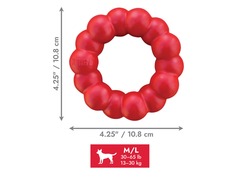De KONG® Ring is ontworpen voor langdurige, verrijkende kauwsessies en voldoet aan het natuurlijke kauwinstinct van een hond. Gemaakt van volledig natuurlijk rood rubber van KONG, geeft de KONG Ring ultraduurzaamheid. De toegevoegde noppen bieden de hond een heerlijke kauwervaring en tegelijkertijd bevordert het gezonde tanden en tandvlees.