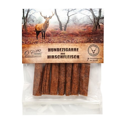 De sigaren van O’Canis zijn de ideale brosse natuurlijke kauwsnack voor je trouwe huisdier. Ze zijn verkrijgbaar in verschillende smaken waaronder rund, hert en haas. Al deze kauwsnacks zijn prima geschikt als tussendoortje tijdens training of als kleine traktatie na het uitlaten. De brosse structuur zorgt ervoor dat honden er makkelijk op kunnen kauwen en er extra lang van genieten. Je kunt ze ook makkelijk breken. O’Canis Sigaren zijn grotendeels vervaardigd van echt spiervlees en veroorzaken daarom geen allergische reacties.