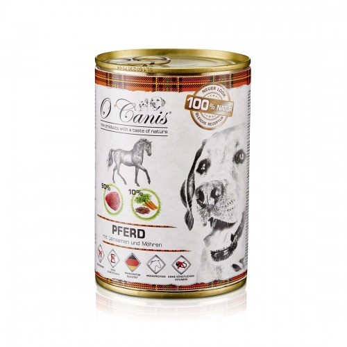 O´Canis met paard en lijnzaad is een compleet voer voor honden. Het biedt u verse, pure natuurlijke ingrediënten van de hoogste kwaliteit. O´Canis voor honden bevat geen kunstmatige smaakstoffen, vreemde eiwitten, conserveermiddelen en kleurstoffen. De optimale samenstelling van ingrediënten garandeert een zeer goede acceptatie en verteerbaarheid.